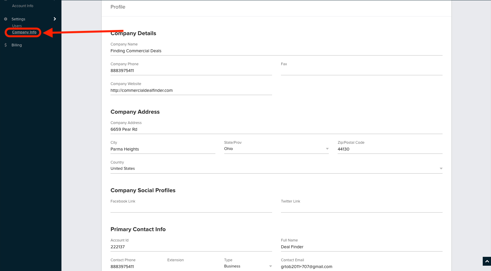 Then Click on COMPANY INFO, in the left Navigation Tool bar.